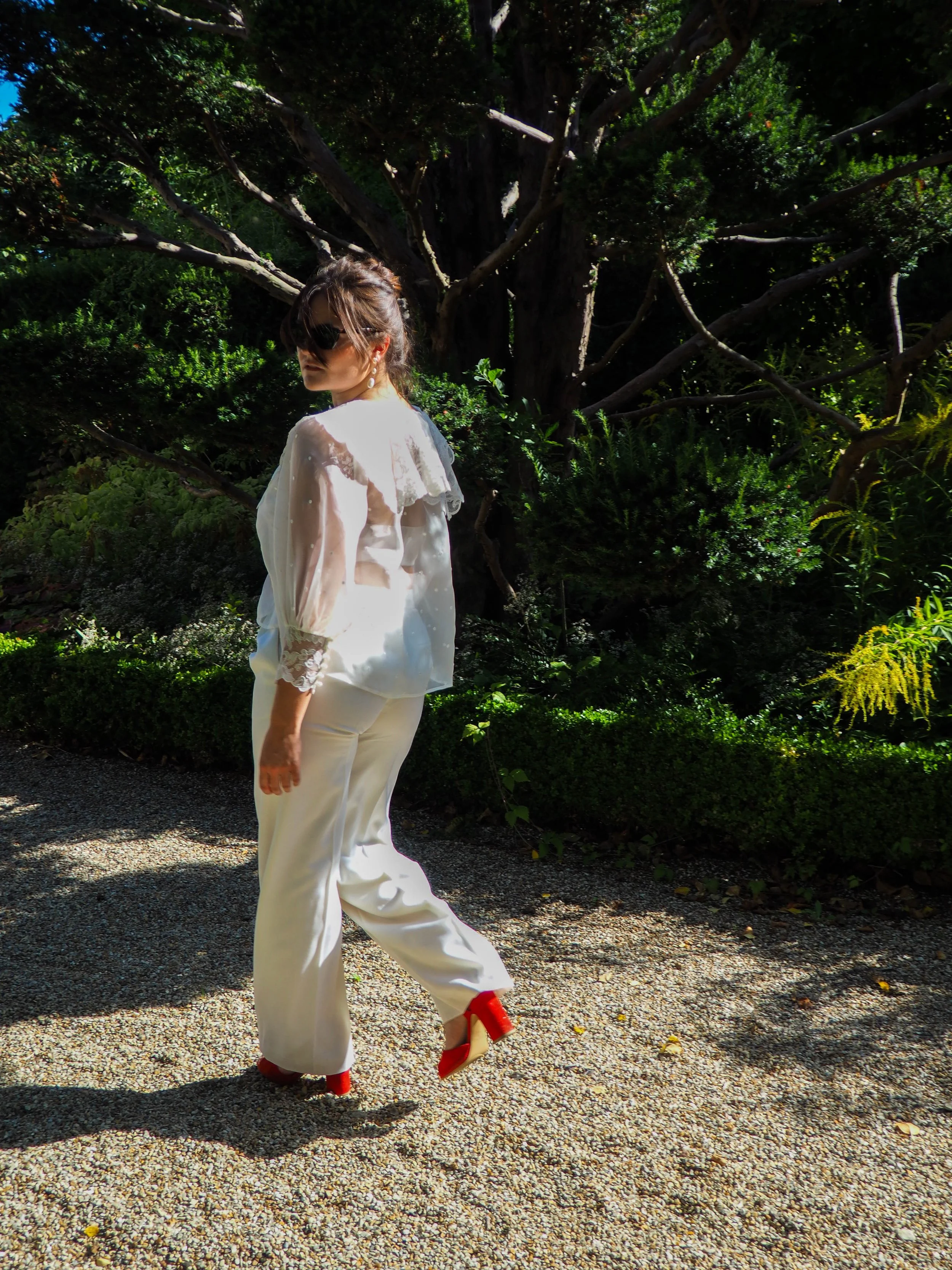 L’ourlet est laissé long pour vous permettre de l’ajuster parfaitement à vos chaussures, il peut bien sûr être effectué par l’atelier sur rendez-vous.